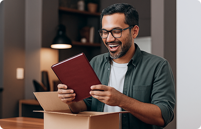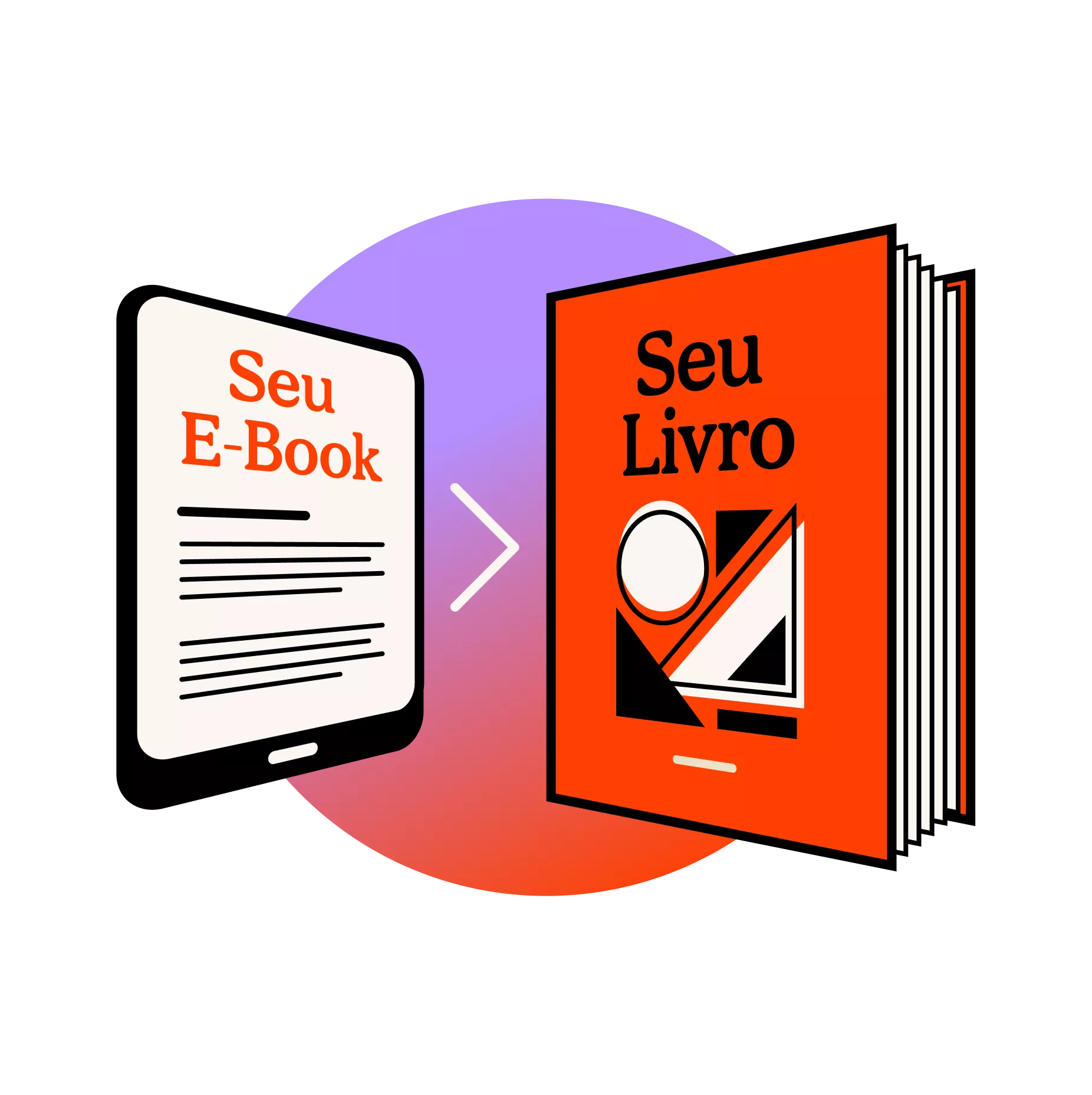 Converta seu ebook digital em um livro físico com capa personalizada criada por IA. As vendas seguem o modelo de produção sob demanda: a parceira da Hotmart produz e envia o livro diretamente ao comprador quando houver venda.